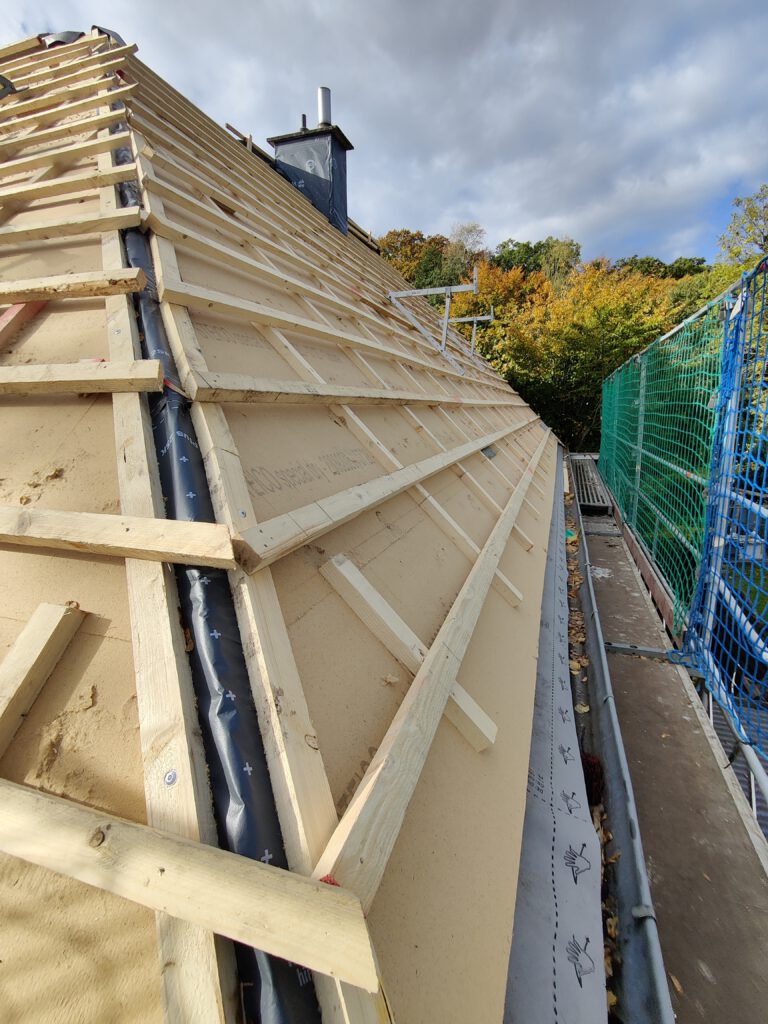 Die Entspannung sollte auch Belohnung sein für die Einschränkungen, die die Bauarbeiten an unserem Haus im Oktober bis Anfang Dezember mit sich gebracht hatten. Gleich nach unserer Rückkehr aus Dänemark ging es los mit der Dachsanierung (alte Dachabdeckung runter; neue,dickere Dämmung und neue Eindeckung mit integrierter PV-Anlage drauf), begleitet vom Einbau neuer Fenster und als krönendem Abschluss die Sanierung der Küche mit Einbau einer neuen Küche. Die alte hat ihren Platz im Keller gefunden, der vorher erst noch entrümpelt wurde.