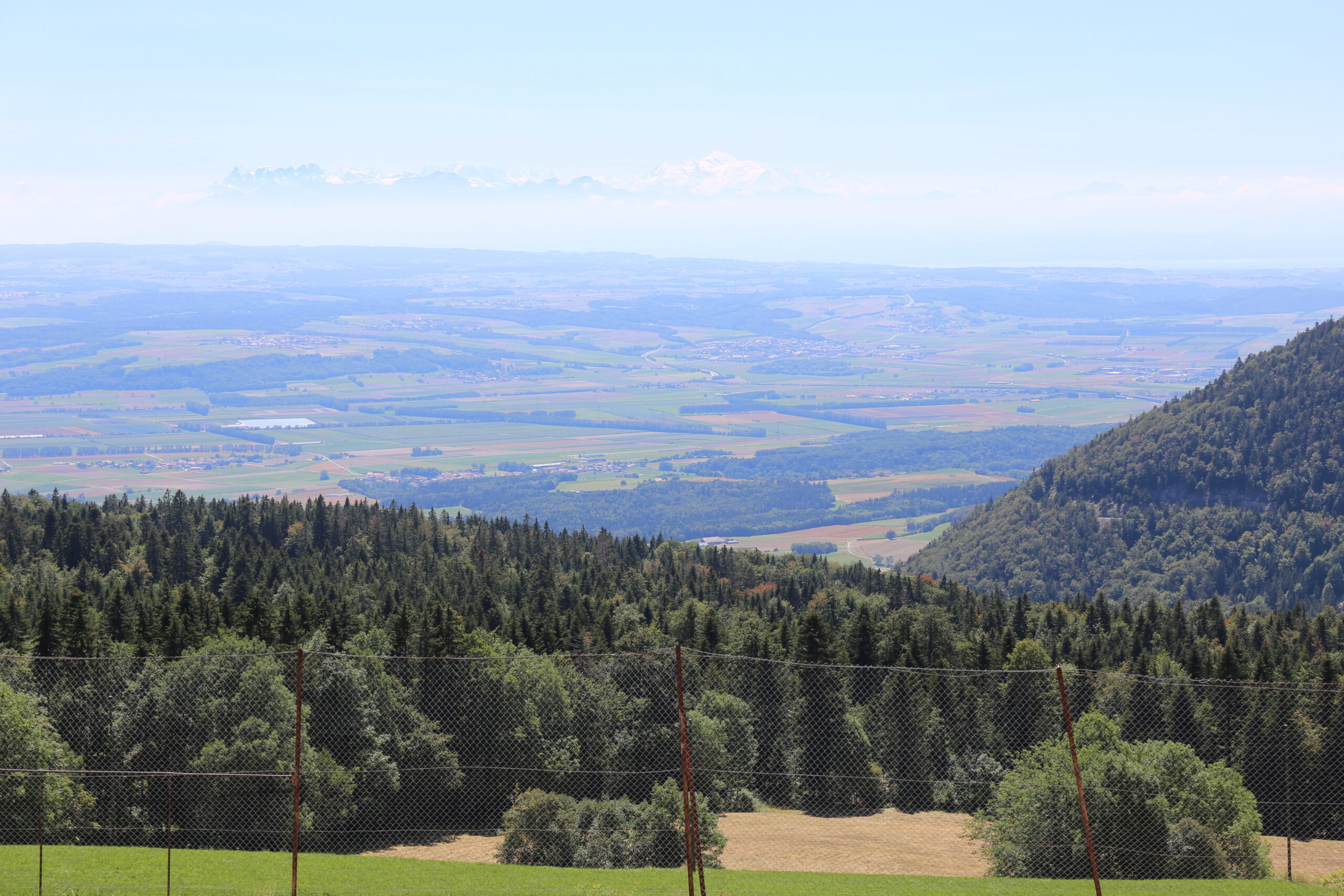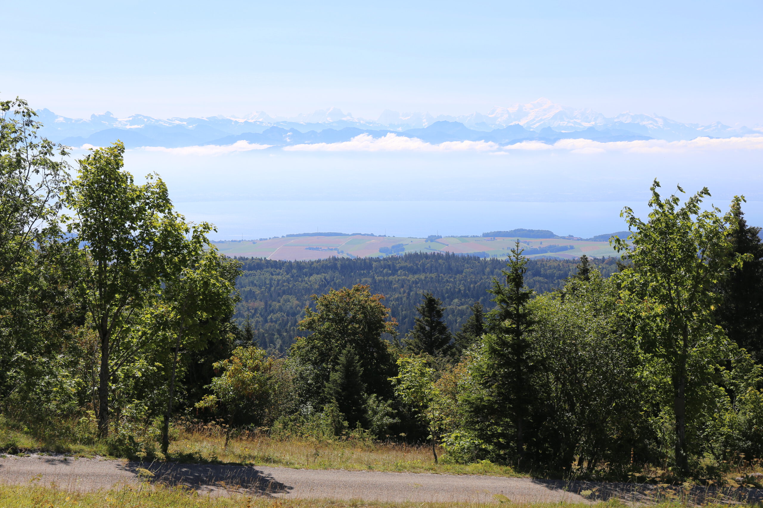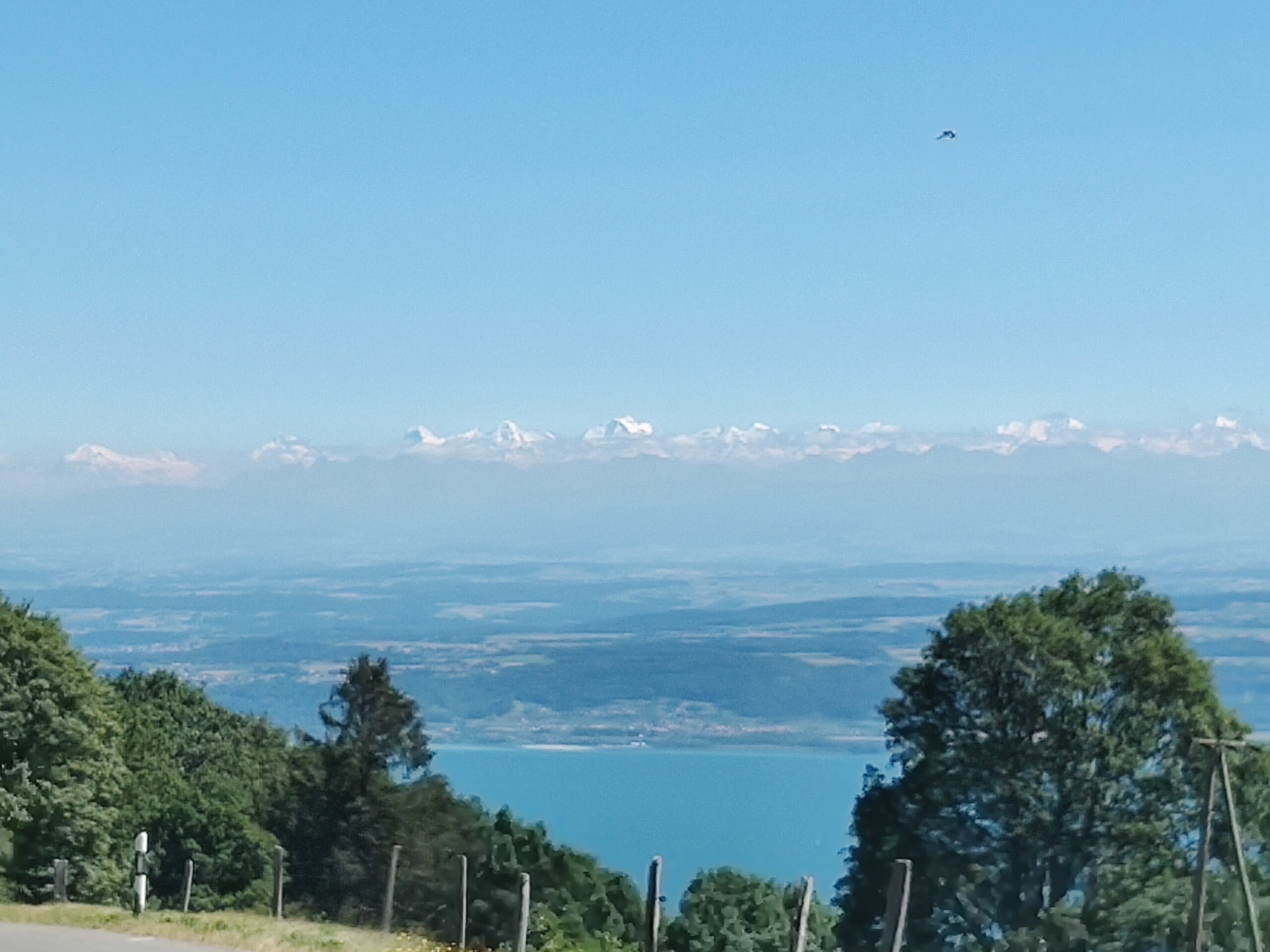 … verlassen wir am 5. August Lausanne in Richtung Greyerzersee, um unser nächstens Quartier, das Romantikhotel „Le Vignier“ zu erreichen. Allerdings nicht auf direktem Weg. Wir schlagen bei bestem Reisewetter noch einen größeren Bogen durch das Schweizer Jura und haben dabei immer das Mont-Blanc-Massiv vor Augen.