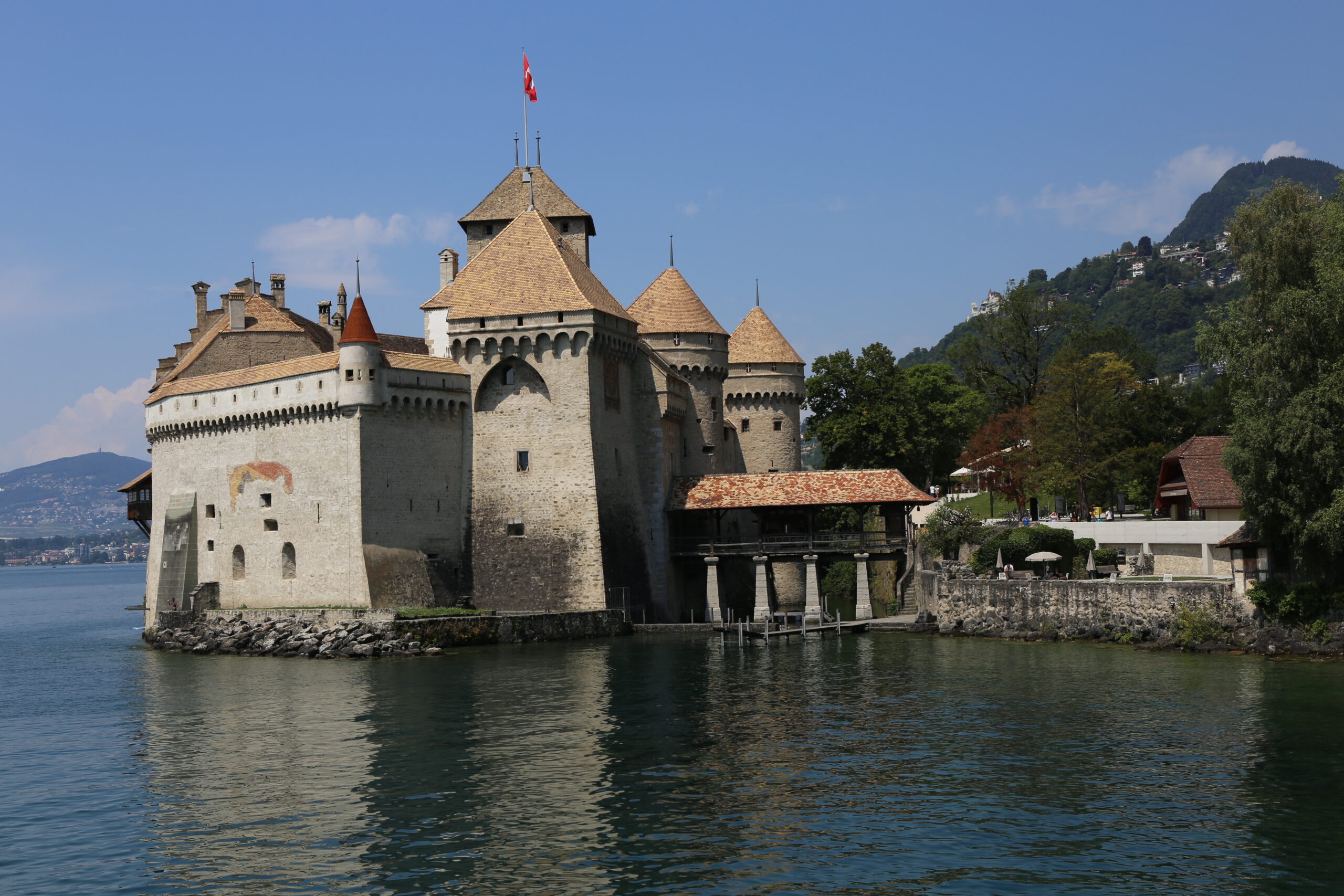 An diesem östlichen Ende des Sees befindet sich eine der meistbesuchten Sehenswürdigkeiten der Schweiz, das Schloss Chillon.