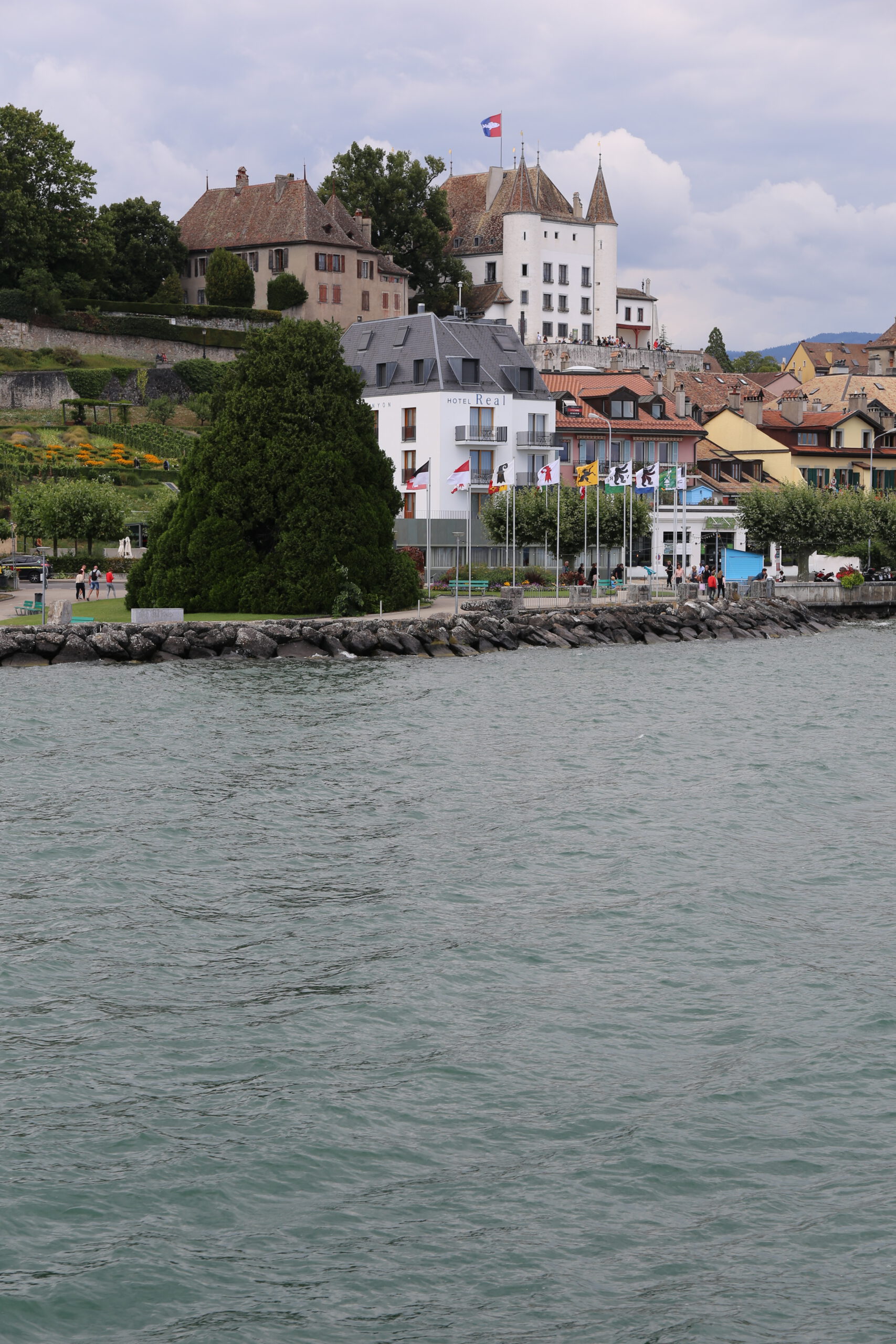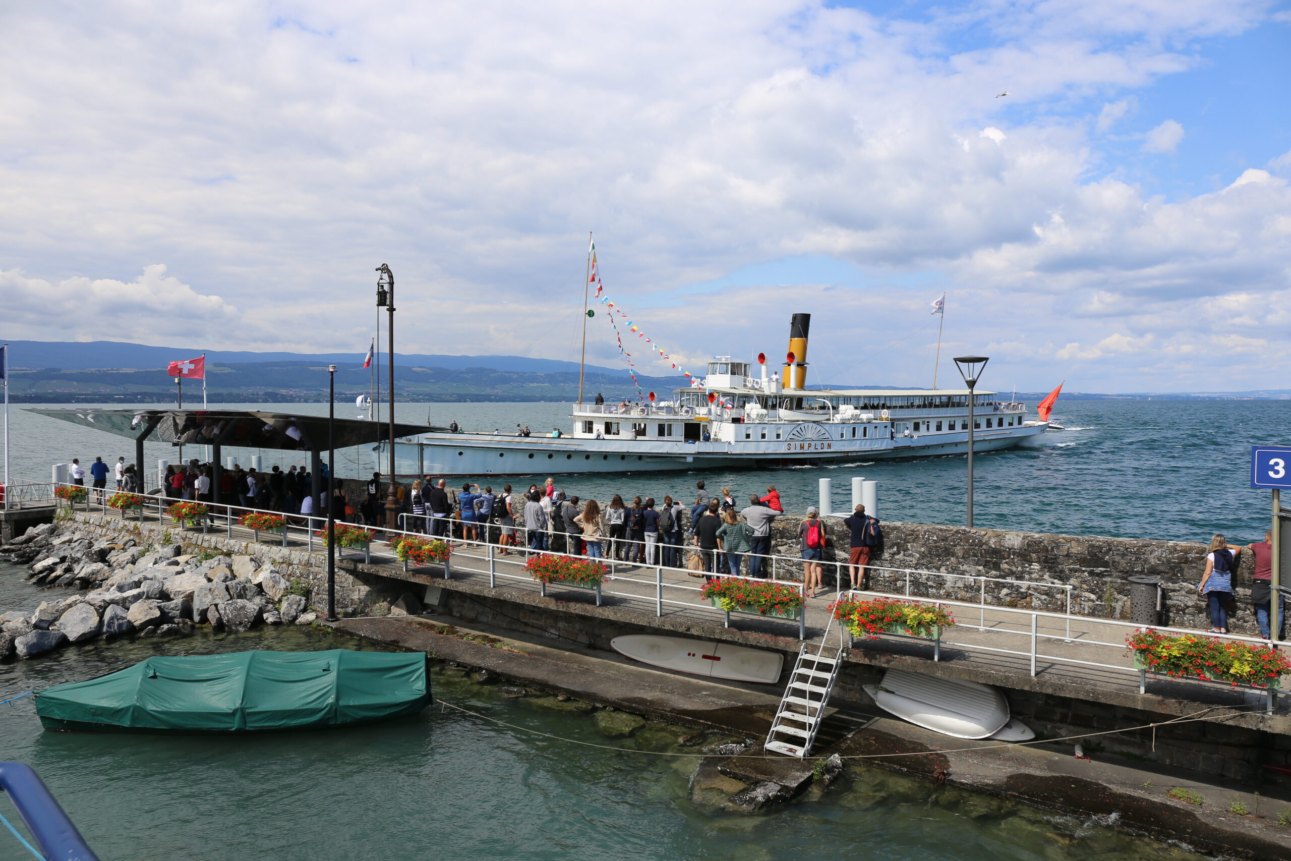 Trotz schlechter Wetterprognose für den Vormittag haben wir am Dienstag die Tagestour mit dem Schiff in den westlichen Teil des Sees nach Genf in Angriff genommen.