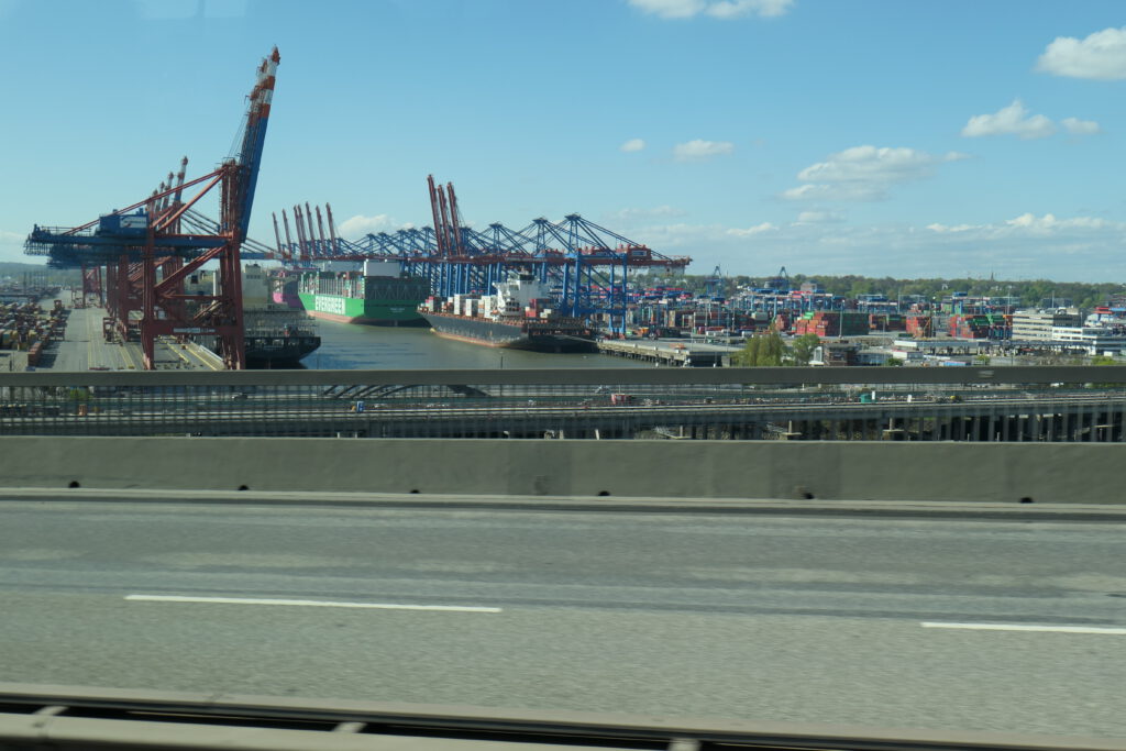 Immer wieder beeindruckend die Fahrt über die Köhlbrand-Brücke mit Hafenblick …