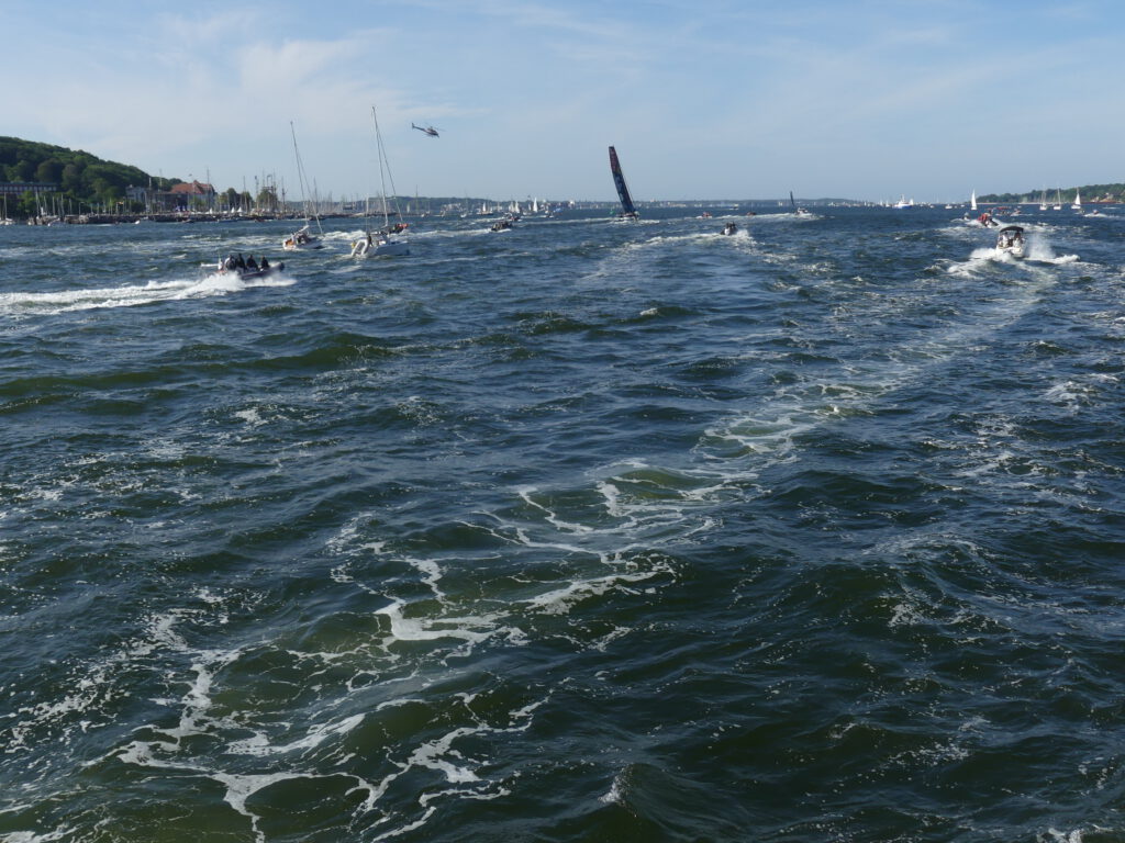 Zusätzlich zum Eintritt in den VIP-Bereich gab es als „Honorar“ vom Veranstalter noch kurzfristig die Einladung auf dem Begleitschiff, der „Stadt Kiel“, die Vorbeifahrt der Boote und das Wendemanöver an der Boje in der Kieler Förde direkt vom Wasser aus zu beobachten.