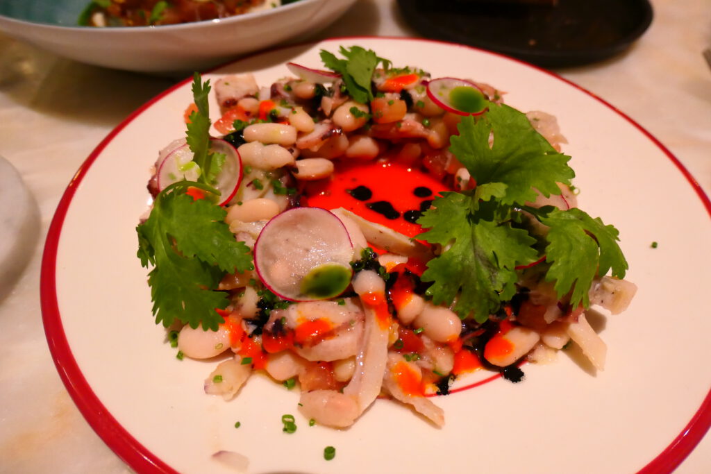 Wir werden nicht enttäuscht. Die Vorspeisen zum Teilen, wie Octopus-Weiße-Bohnen-Salat.