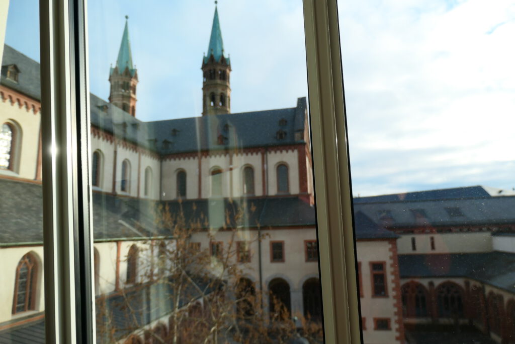 Gesines jährliches Offline-Treffen des Rotary-Clubs (ansonsten trifft man sich online) findet dieses Jahr in Würzburg statt. Übernachtet und getagt wird im Burkardushaus, einem katholischen Tagungszentrum direkt am Dom. Vom Zimmerfenster blickt man direkt in den Innenhof und auf den Kreuzgang.