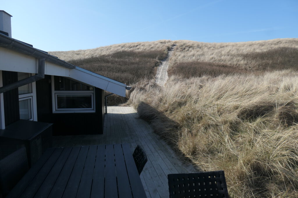 Nach einer störungsfreien Fahrt – ich als Beifahrer in halbliegender Position – erreichen wir um 15.30 Uhr das Ferienhaus, direkt am Dünenaufgang in Strandnähe.